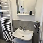 La struttura comprende un soggiorno con una lavatrice per il massimo comfort. Per maggiore comodità, l'appartamento dispone di 1 bagno. Inoltre, sono presenti un bagno con WC separato e una doccia.